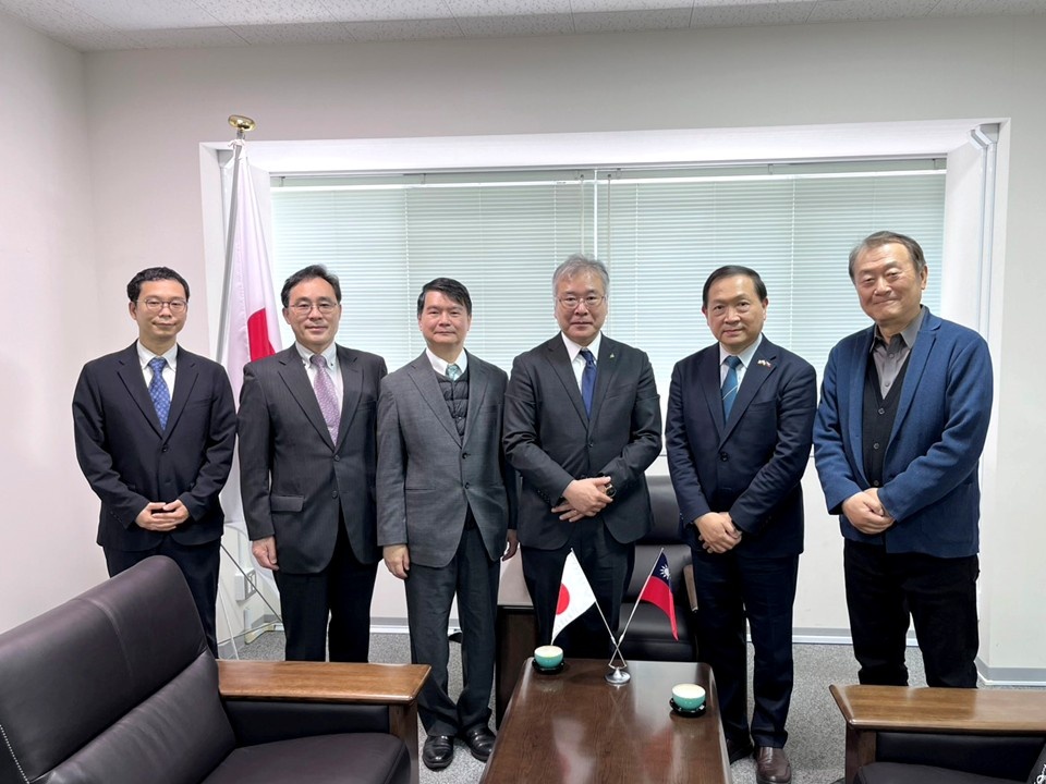 On April 2, 2026, a delegation from the Japan Education Center of Ming Chuan University (Taiwan), including Director Yen-Kuo Fong, Distinguished Professor Hiroshi Kagawa, and Mr. Hong-Ming Wang, Senior Assistant of the Taipei Economic and Cultural Office in Fukuoka, visited the Tobata Campus of Kyutech. From Kyutech, President Takuo Yasunaga, along with Vice President Tohru Kamiya (for Office of International Strategic Partnerships and Advanced Research Headquarters), attended the meeting and engaged in discussions.