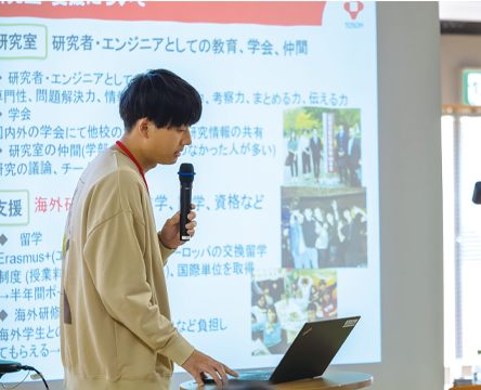 企業の方や飯塚キャンパスのKCL受講生、様々な人と関わる機会がある。人と関わることが好きな人にもKCLはおすすめ。自分の専攻以外のことも知り、視野が広がるので、ぜひ参加してください。