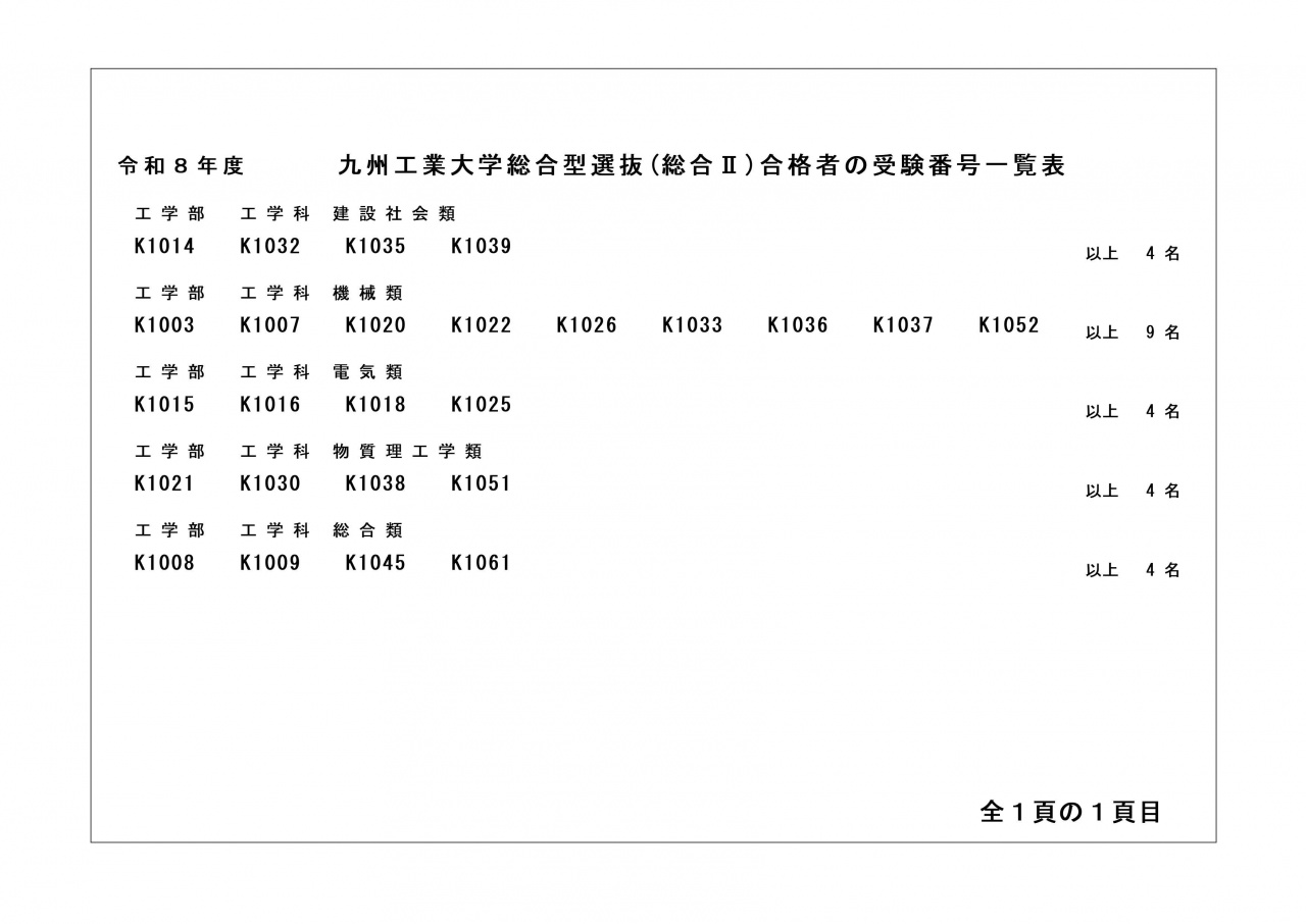 令和8年度総合型選抜(総合Ⅱ)(第2段階選抜)合格者発表[工学部]