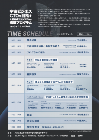 このたび、本プログラムの開始にあたり、キックオフシンポジウムを開催いたします。教育関連のみならず宇宙ビジネスの開拓をご検討の皆様にも役立つ議論を目指しています。