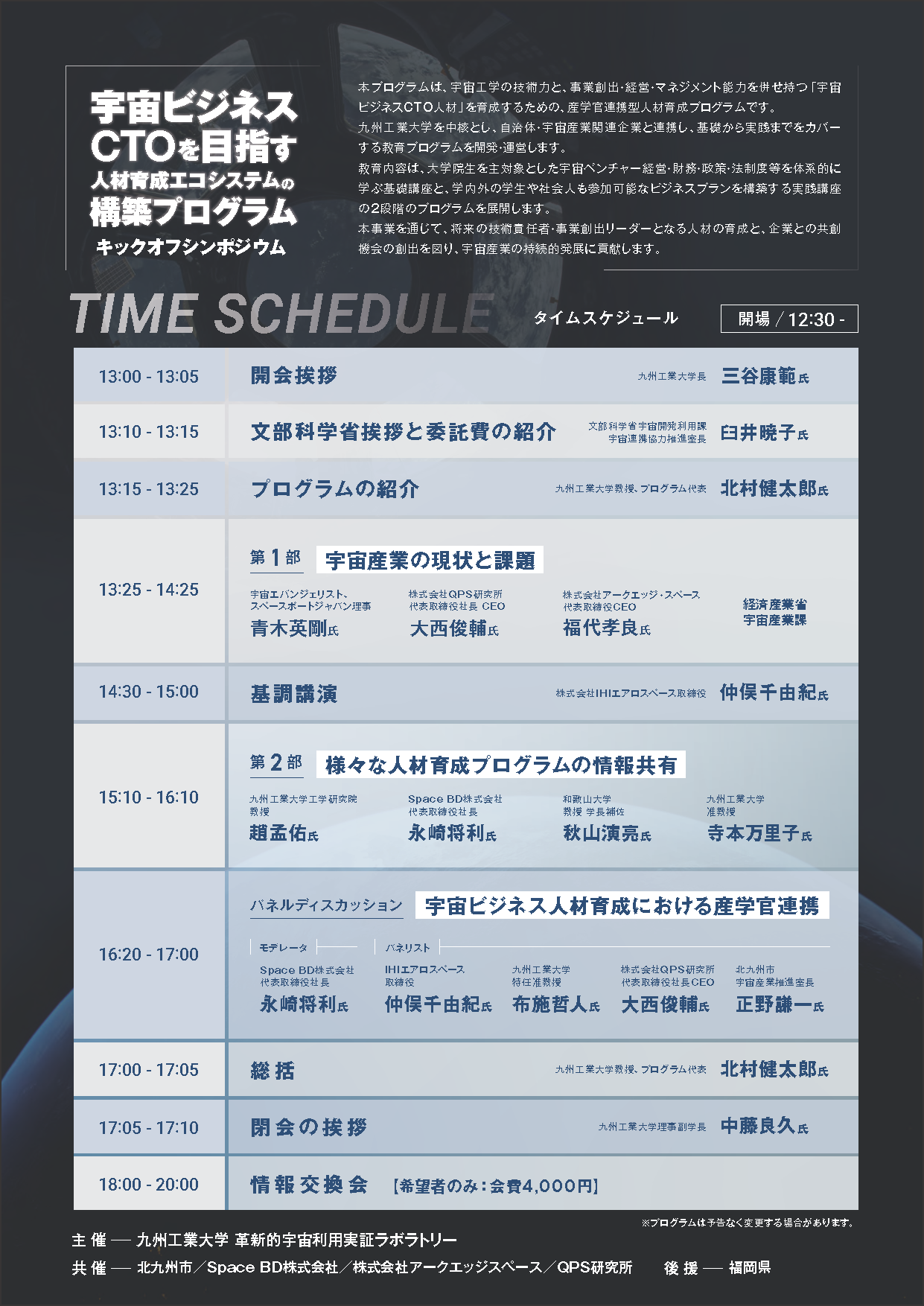 | 共 催 | 北九州市 / Space BD株式会社 / 株式会社アークエッジスペース / QPS研究所 | |