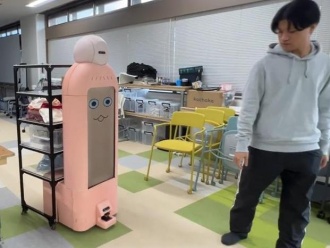 介護施設などを対象として、人間と一緒に働くロボットの実現を目指して開発を進めている ロボット、SABO を展示します。目の前にいる人を自動で追跡する機能を体験できます。 |