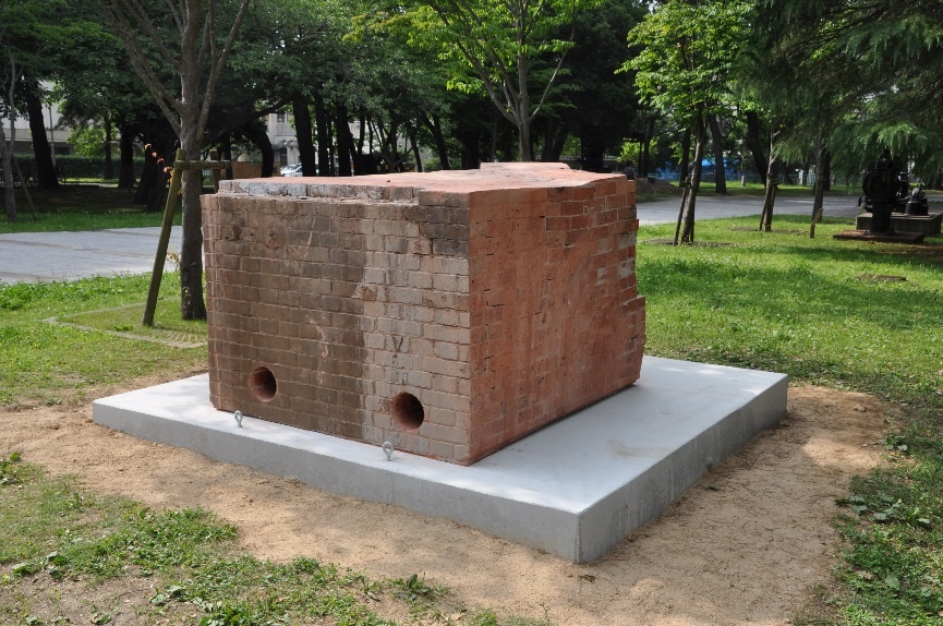 現在、北九州市が施行している「折尾地区総合整備事業」により解体中の折尾駅ですが、日本初の立体交差駅として名を博しており、下を筑豊本線、上を鹿児島本線が立体交差して走っています。下を走る筑豊本線は筑豊で採れた石炭を若松へ輸送するために筑豊興業鉄道として1889年(明治22年)に整備されました。この筑豊興業鉄道を設立した1人が、本学(前身の明治専門学校)の創設者「安川敬一郎」であることから本学と折尾駅は深い関係があります。そこでこの度、北九州市、九州旅客鉄道株式会社のご協力のもと、折尾駅折尾立体交差橋りょうに使用されていた煉瓦の一部を戸畑キャンパス内にて、保存・展示することといたしました。