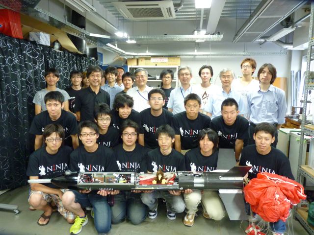 今年製作したロケットの名前はNINJA la dernière。仏語で「最後の忍者」という意味です。来年からは米国での有翼ロケット実験に専念するため、文字通り今年が最後の挑戦となります。