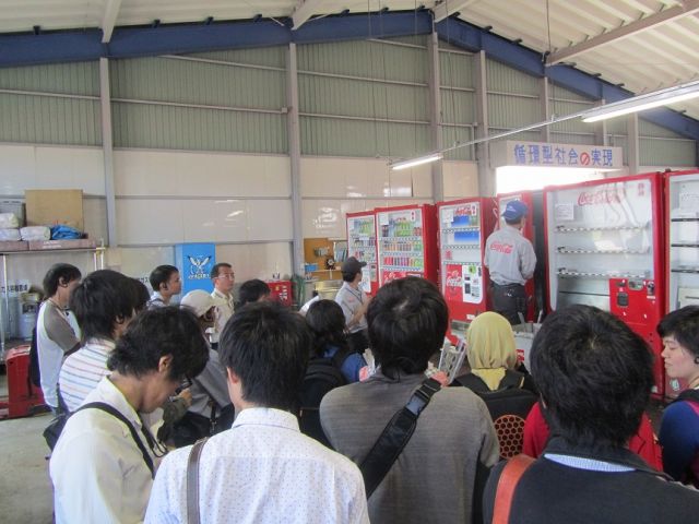 平成24年9月25日(火)、本プログラムに参加する東アジアからの留学生8名、専攻に在籍している留学生3名、日本人学生8名、教職員3名で、北九州エコタウン内の施設(飲料容器・自動販売機、蛍光管のリサイクル)、三菱マテリアルの施設、環境ミュージアムの施設見学を行いました。