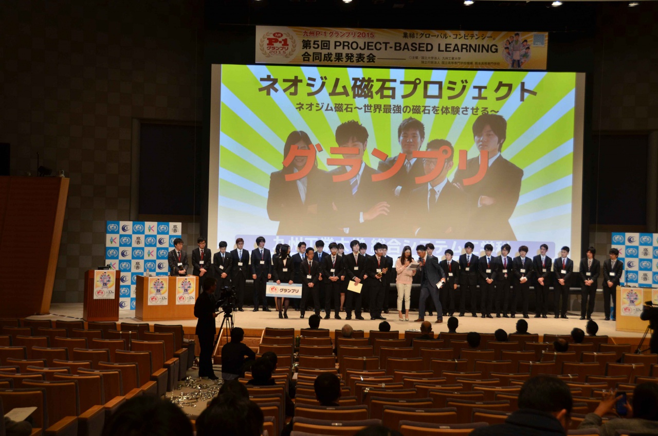 平成27年3月7日(土)、北九州国際会議場メインホールにおいて「九州P-1グランプリ 2015 ~集結!グローバル・コンピテンシー~」を開催しました。九州工業大学各学科代表7チームに加え、熊本高専より4チーム、北九州高専より1チームの全12チームによるプロジェクト成果が発表され、成果物・模型の提示や、工夫を凝らした特色あるプレゼンテーションが行われました。