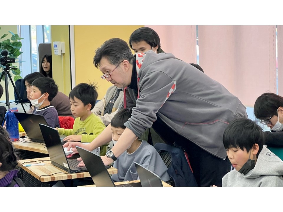 午後は、北九州市立ひびきの小学校の児童14名を対象に、世界中で親しまれているゲーム「マインクラフト(Minecraft)」を用い、建築物を制作するワークショップを行いました。頭のなかのアイデアやイメージを、プログラミングで工夫しながら形にする体験を通して、子供たちが創造性や探求心を大いに発揮し、失敗を恐れずにチャレンジ精神を発揮している様子が印象的でした。