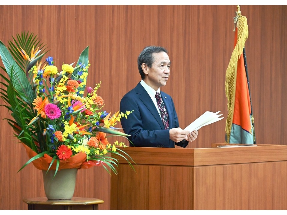 2025年10月1日、百周年中村記念館2階 多目的ホール(戸畑キャンパス)において令和7年度秋季入学式を挙行しました。23か国・地域の留学生79名を含む87名の新入大学院生が、九工大生として新たな一歩を踏み出しました。