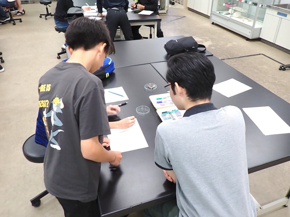 はじめに、紙にボールペンで線を書き、シロアリが線の上を歩く様子を観察しました。次に、「なぜシロアリはボールペンの線の上を歩くのだろう?」という問いに対し、参加者は、自ら考えた実験と観察を繰り返し、答えを導き出しました。最後に、調べた内容や気づいたことを各自で発表しました。