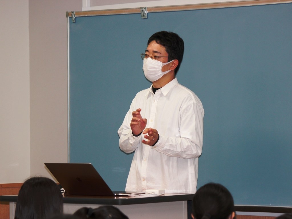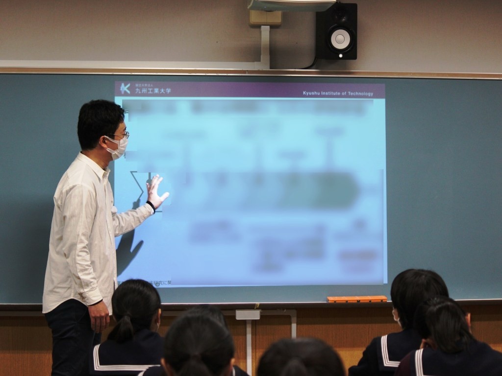 2025年12月3日、この連携協定の一環として、大学院情報工学研究院 生命化学情報工学研究系の岩田 通夫准教授による「コンピュータが切り拓く新しい薬づくりの世界」と題した進路選択特別講演会を、筑紫女学園高等学校1年生27名に対して実施しました。この2025年度進路選択特別講演会は全4回の実施を予定しており、今回は第3回目の実施となります。