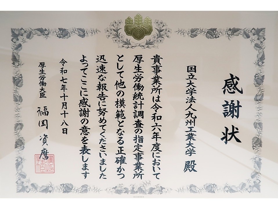 2025年11月25日、福岡県庁で「令和7年度福岡県統計功績者表彰式」が開催され、労働統計において「毎月勤労統計調査」への協力を行った事業所として評価され、厚生労働大臣表彰を受賞しました。