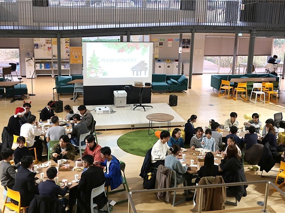 2025年12月23日、戸畑キャンパスにおいて、GYMLABOとランゲッジ・ラウンジ(LL)が合同でクリスマスイベントを行い、九工大生や関係者約60名が参加しました。