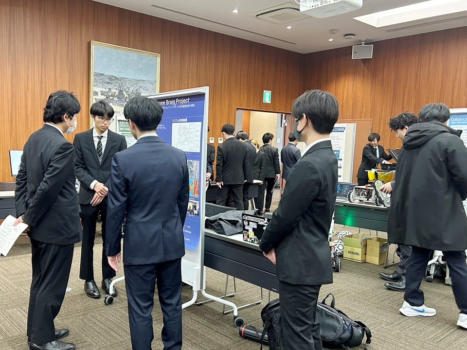 学生プロジェクトにご支援いただいている明専会や協賛企業の方々を来賓としてお招きし、学生たちはポスターや実機展示などの形式で、この1年間の活動成果について報告を行いました。