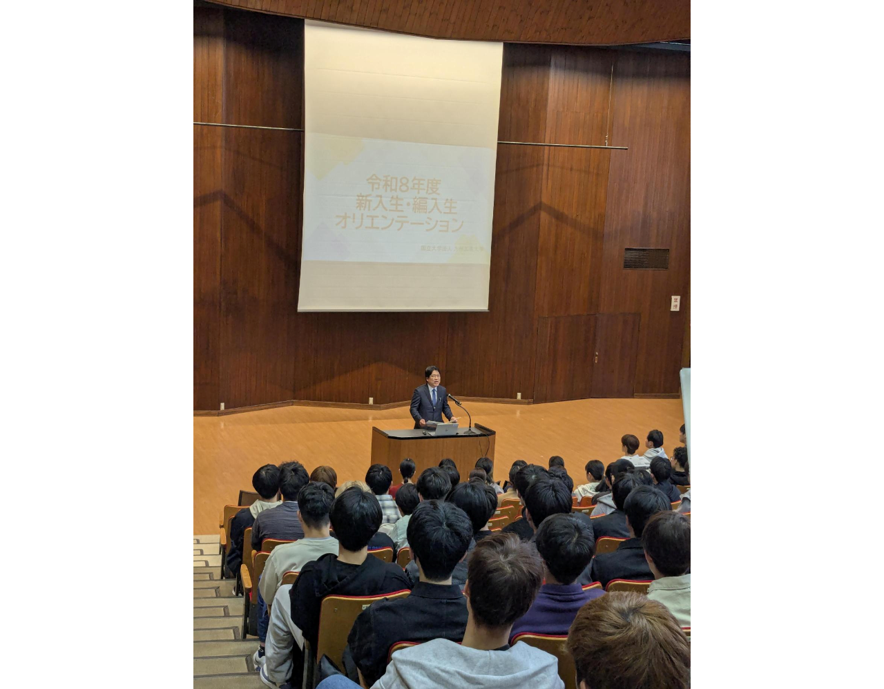 2026年4月3日、戸畑キャンパス 記念講堂において「令和8年度新入生・編入生オリエンテーション」を開催しました。