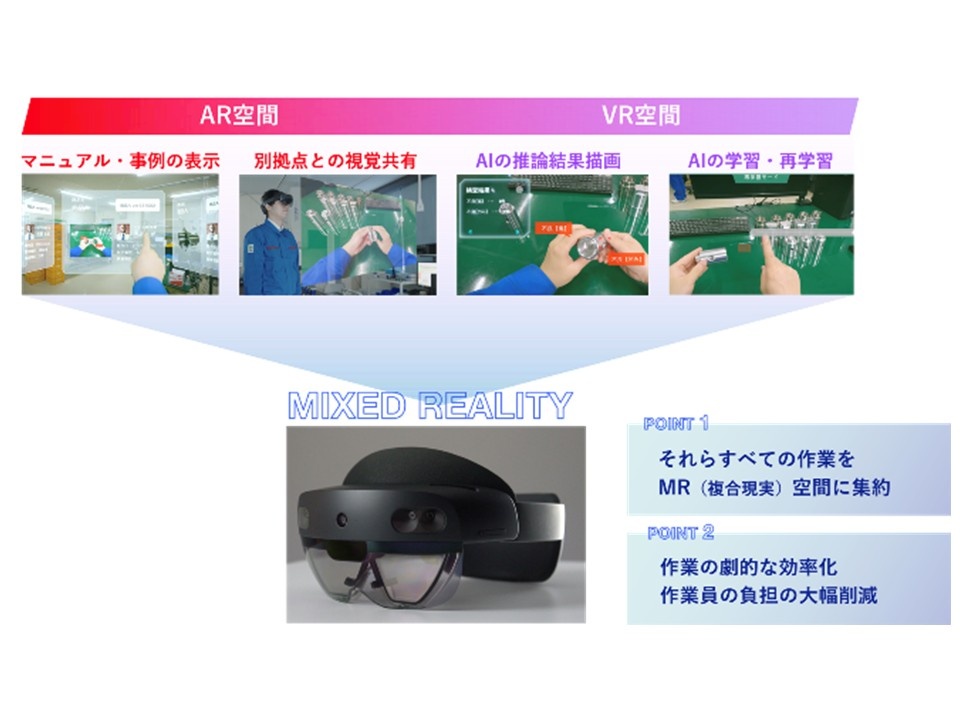 | 研究概要 | 外観検査は品質管理における重要な工程である一方で、人手不足や作業負荷の高さが課題となっている。従来の外観検査AIは、良品画像10枚のみを用いた学習が可能で、ノーコードで誰でも扱えるため導入ハードルが低い反面、AIを調整できる余地が原理的に少なく、現場での最適化が困難であることから、実用化に至らないケースが多かった。 これに対し、我々が提案するAIでは良品画像を約1,000枚必要とするものの、その分調整の自由度が高く、さらに調整コストも低く抑えられるのため、自動化に耐えうる性能を確保できる。さらに、MRデバイスを活用することで、検査員の負担軽減や、検査員ごとの検査結果のばらつきの抑制が可能となり、全体として品質向上に繋がる。本技術は、MR技術との統合により、農業分野やインフラ点検分野への応用も期待される。 |