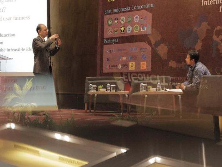 平成30年11月6日(月)~7日(火)、本学大学院情報工学研究院 電子情報工学研究系 鶴 正人教授がマカッサル市(インドネシア)で開催された国際会議The 2018 East Indonesia Conference on Computer and Information Technology (EIConCIT) に招かれて、ネットワーク資源割り当てと公平性の研究に関する招待講演を行い、インドネシアの様々な大学(ハサヌディン大学、インドネシア大学、Universitas Muslim Indonesia、Universitas Mulawarman 等)の研究者と交流しました。