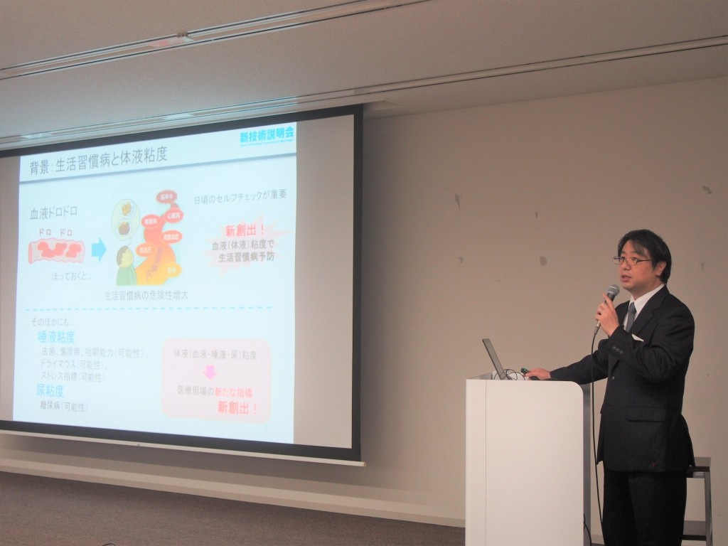 新技術説明会は、発明者自身が企業関係者を対象に実用化を展望した技術説明を行うもので、今回5名の教員が研究成果を発表しました。本年度は、企業関係者から延べ381名の事前申込みがあり、多数の参加者を前に各教員が熱のこもった説明を行い、企業関係者も熱心に聴講していました。発表後には多数の技術相談が寄せられ、今後、共同研究、技術移転等、産学連携活動への展開が期待されます。