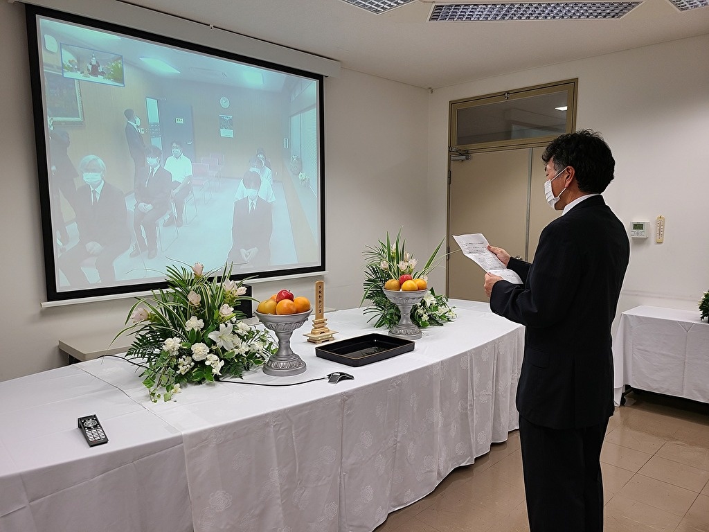 2020年9月16日、若松キャンパス及び飯塚キャンパスにて、実験動物慰霊式を執り行いました。 九州工業大学において、研究・教育の目的で実験に供された動物の御霊に対し謹んで感謝と敬意を表すため、2012年度より開催し今回で9回目となります。 式典では学長挨拶を始め、両キャンパス代表者の慰霊のことばによる式辞の後、参列者による献花・黙祷が行われました。
