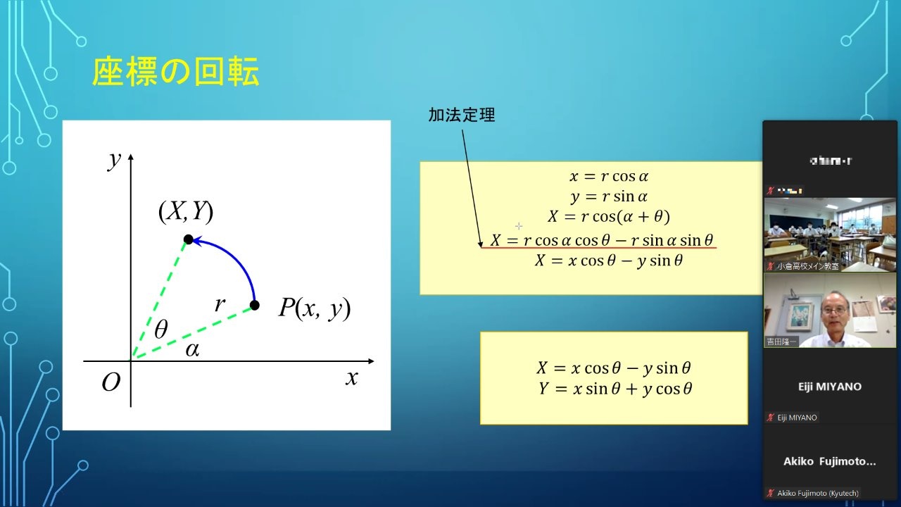 2021年9月14日、福岡県立小倉高等学校2年生23名を対象に、SSH事業の一環として大学実習を開催しました。今回は、『数理・AI・データサイエンスについて学ぼう』と題し、情報工学分野、特に、数理・AI・データサイエンス分野の基礎から応用までを、以下の通りオンライン(Zoom)授業として実施しました。