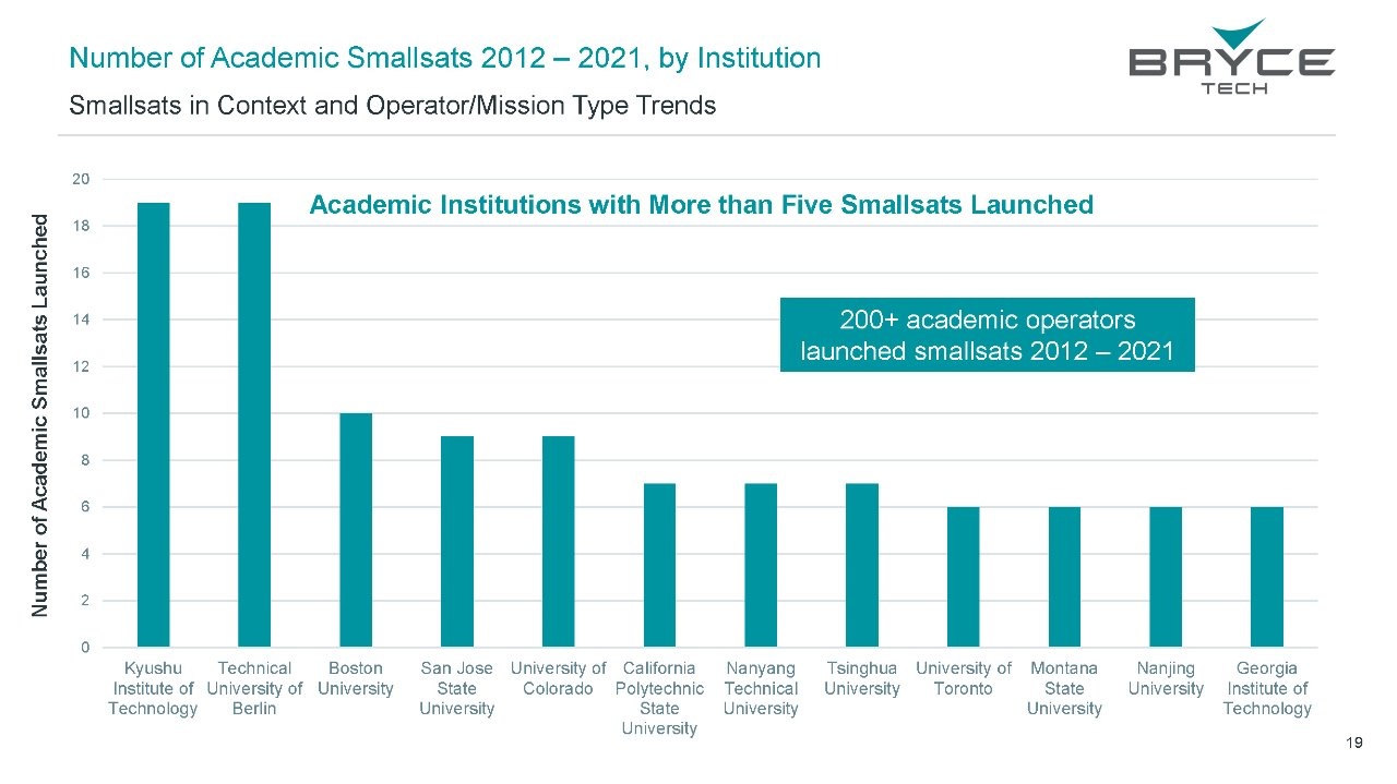 宇宙産業に関する調査で世界的に知られる「Bryce Space and Technology」(米国バージニア州)が発行したレポート「Smallsats by the Numbers 2022」によると、運用する小型・超小型衛星の数において、本学は大学・学術機関の中で世界1位となりました。これは2018年から5年連続の1位となります。