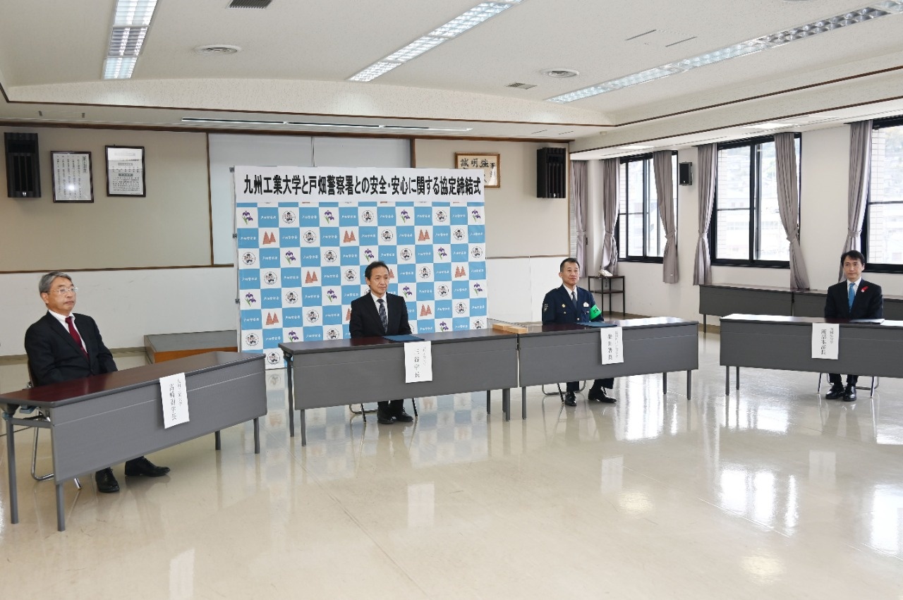 2022年12月2日、九州工業大学と福岡県戸畑警察署は、安全・安心な地域社会の実現に資するため、お互いに協力・連携することにより、地域社会の発展を図ることを目的とした協定を締結しました。本学学生が安心して学生生活を送り、併せてボランティア活動等を通じて防犯意識が高まることを期待しています。